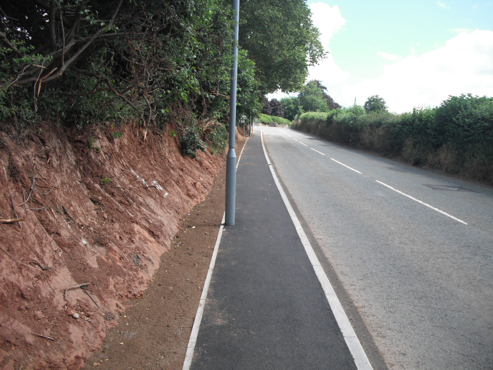 A 290 metre footway lying along the A39 Hallatrow Hill between Langfords Lane and Rosewell Country Care Home is now in place. New lighting columns are in place, new drainage will take surface water away from the road, and replacement trees will be planted in Hallatrow Village to replace those removed to accommodate the new pathway which required extensive vegetation removal