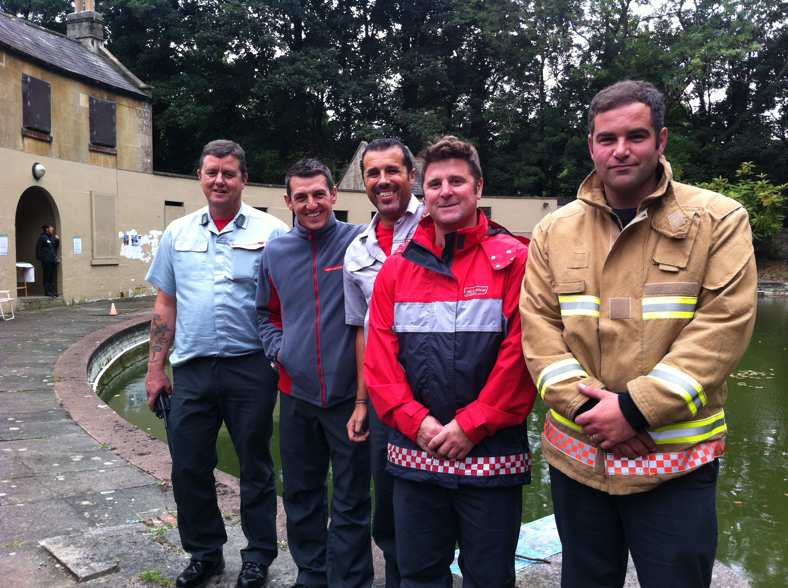 Members of Bath Firefighters Blue Watch also called in to take a look at the Pools as they are interested in using them for water-rescue training.