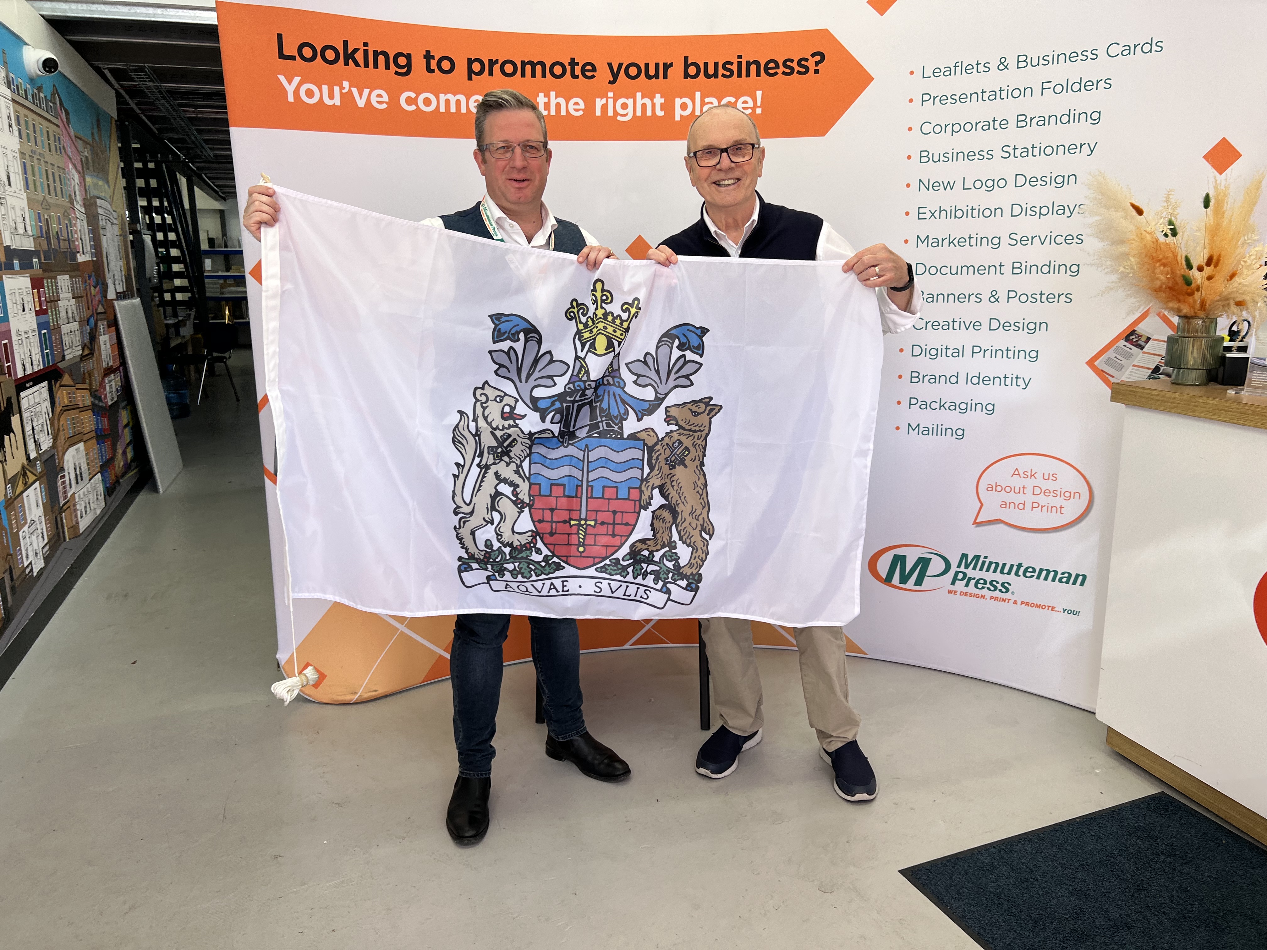 Currently, the city’s existing flag was too tatty to run up a flagpole so, while my mate David Dixon was working for Minutemen Press, he very kindly printed one off for me.