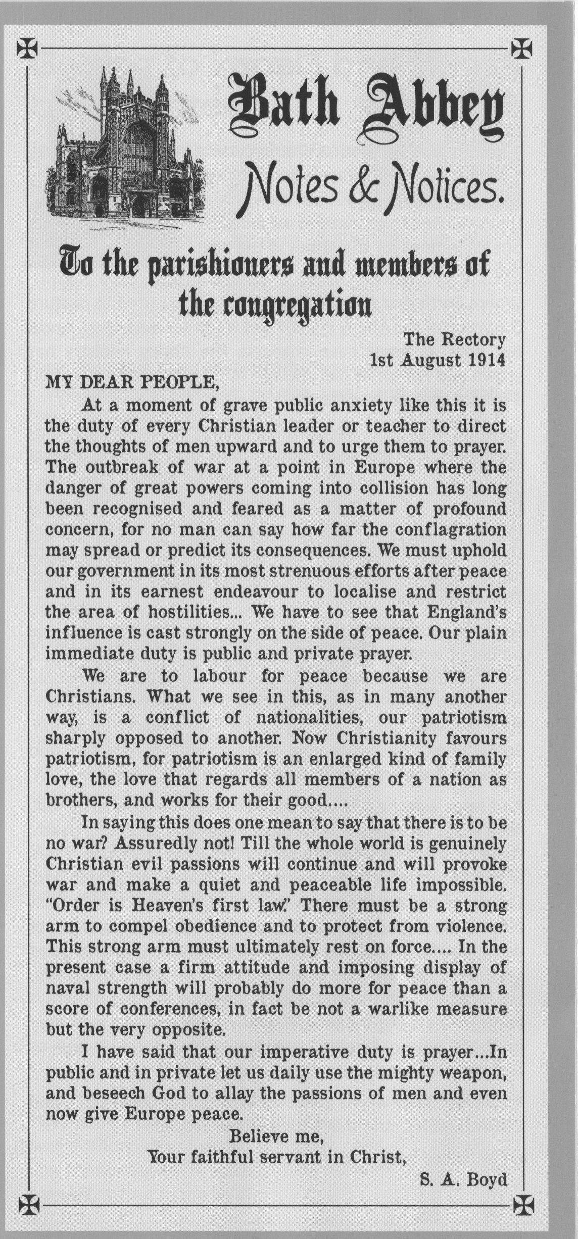 The monthly notice from August 1914.